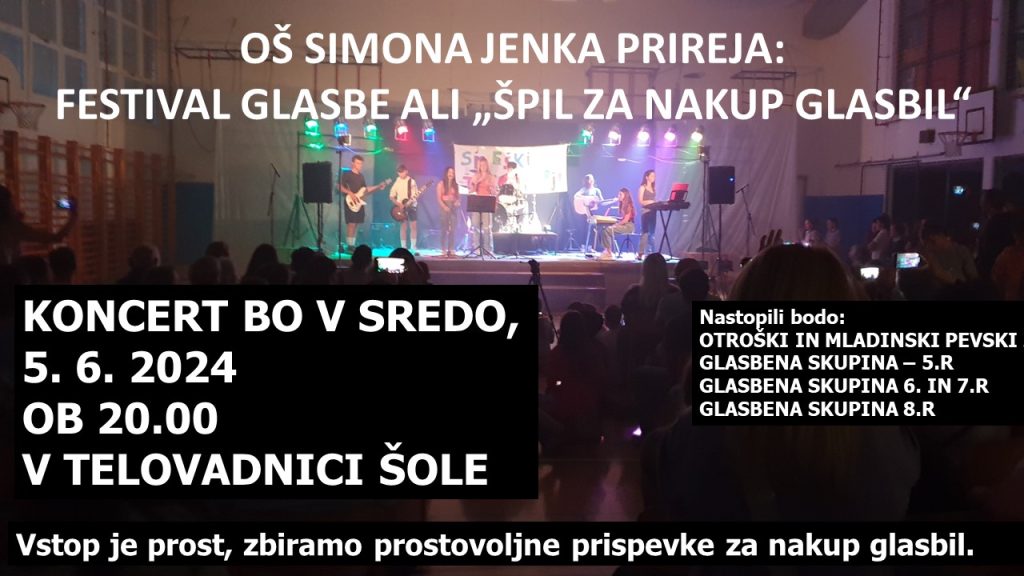 Koncert bo v sredo, 5. 6. 2024 ob 20.00 v telovadnici šole.