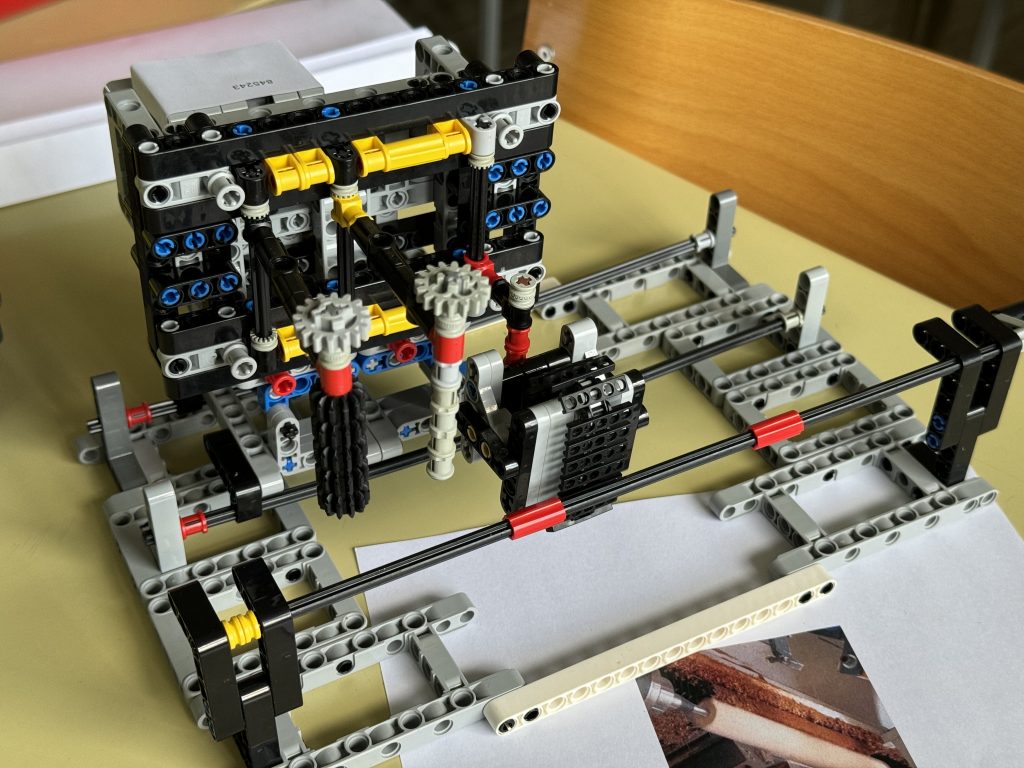 bilo potrebno sestaviti model stružnice za les, z upoštevanjem vseh gibanj in pomikov. Jakob je