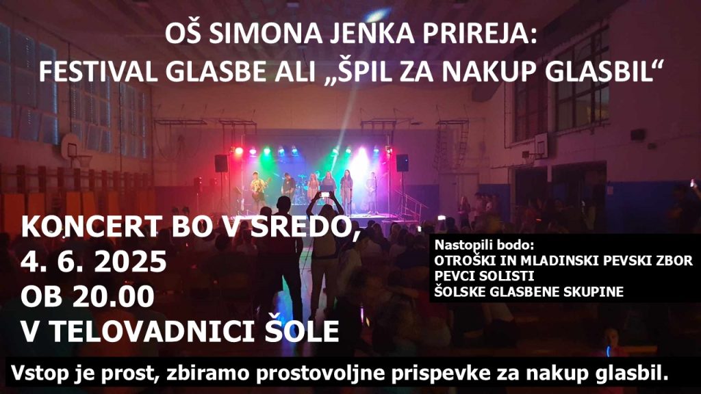 Koncert bo v sredo, 4. 6. 2025 ob 20.00 v telovadnici šole.